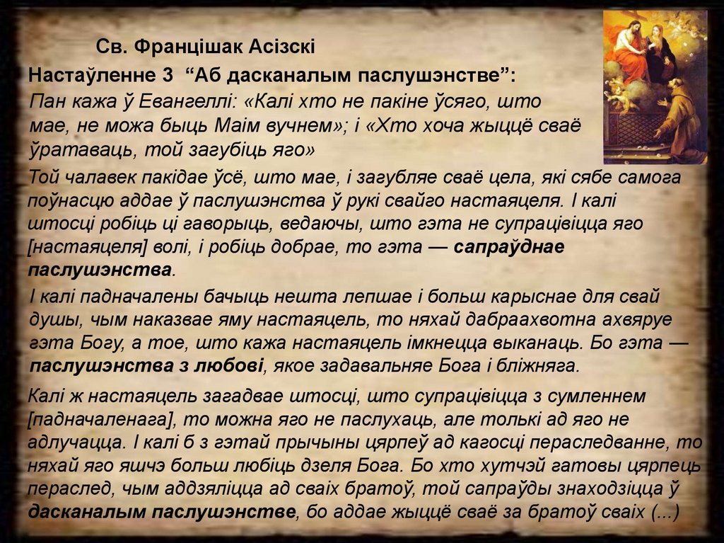 Св. Францішак АсізскіНастаўленне 3 “Аб дасканалым паслушэнстве”: