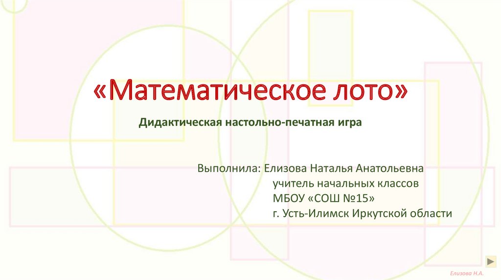 «Математическое лото»Данная