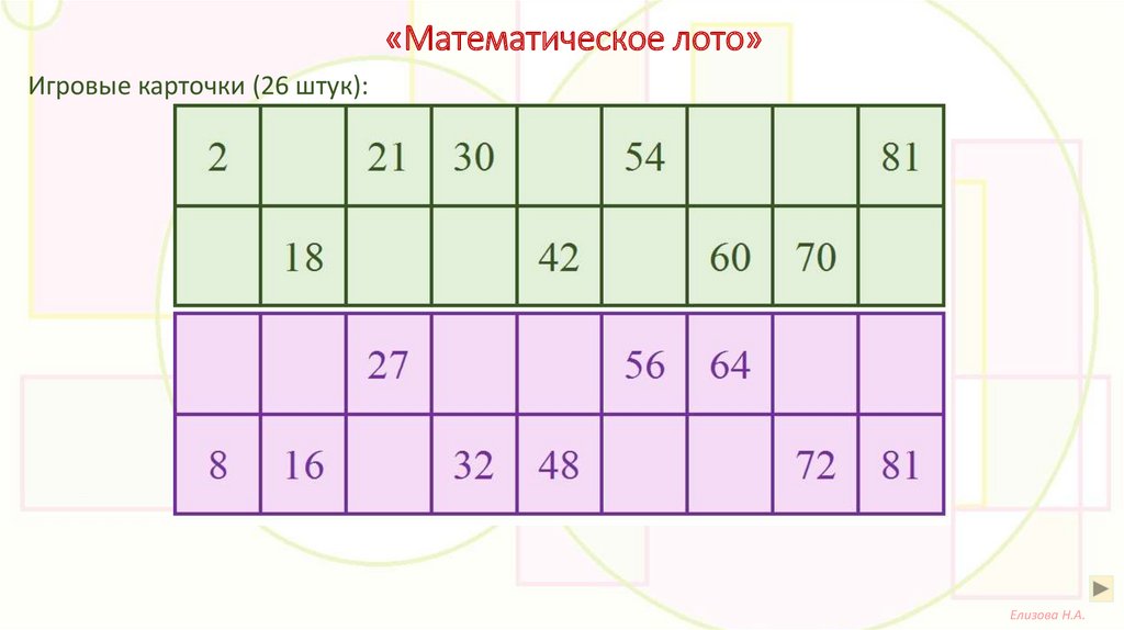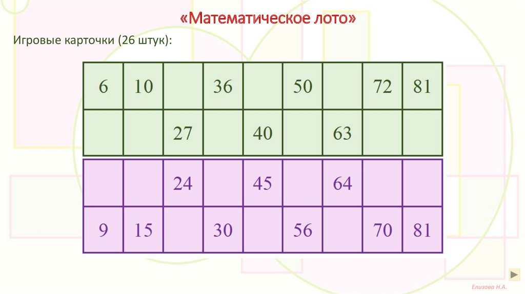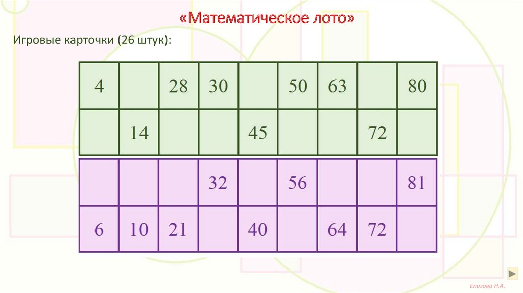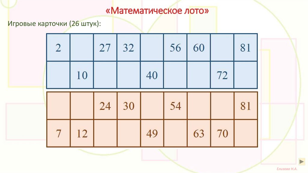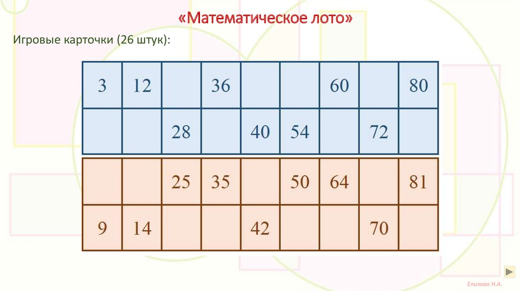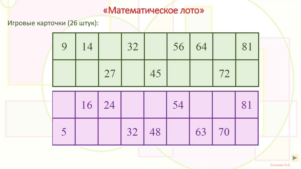 «Математическое лото»Игровые карточки (26 штук):