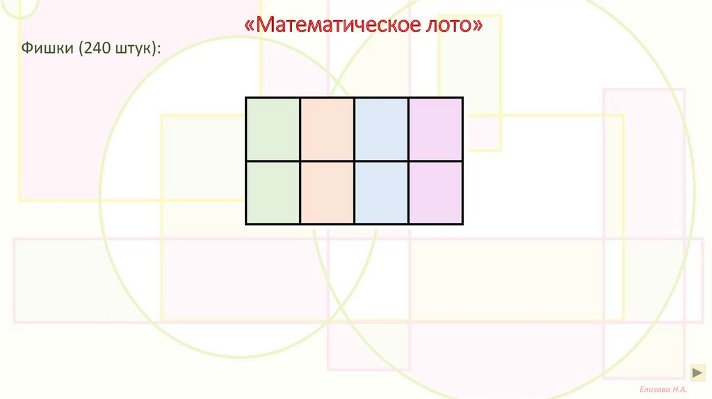 «Математическое лото»Фишки (240 штук):
