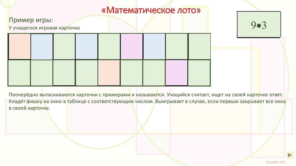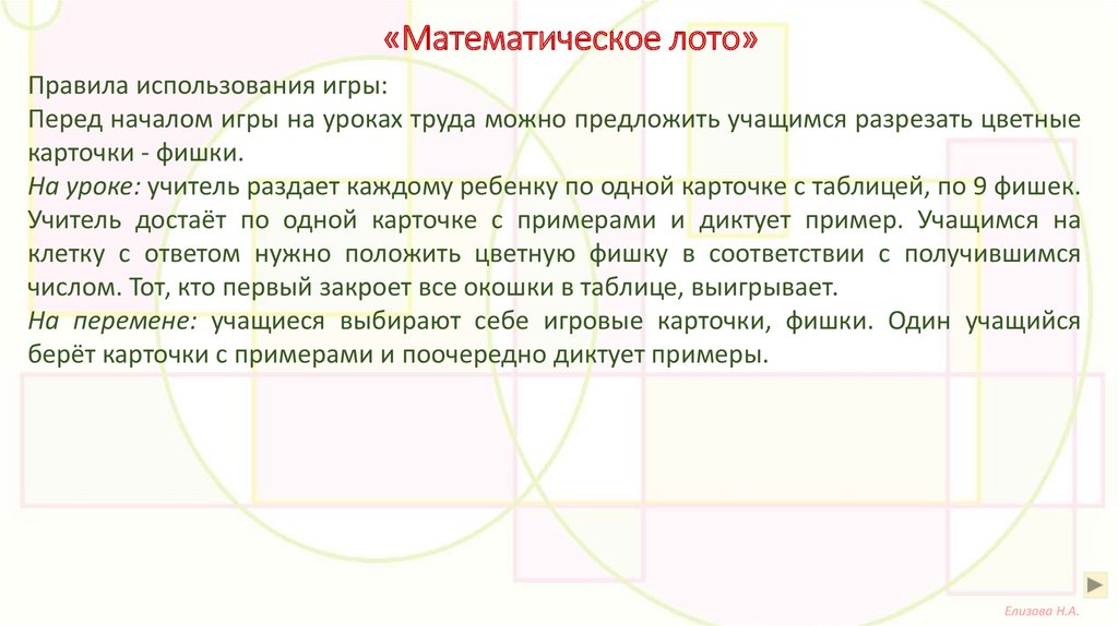 «Математическое лото»Правила использования игры: