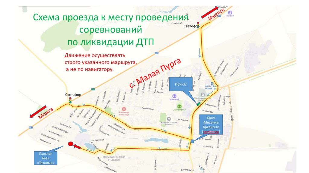 Схема проезда к месту проведения соревнований по ликвидации ДТП, лыжная база «Тазалык»