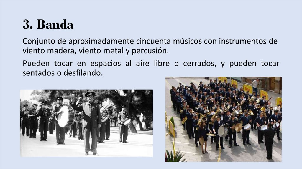 3. BandaConjunto de aproximadamente cincuenta músicos con instrumentos de