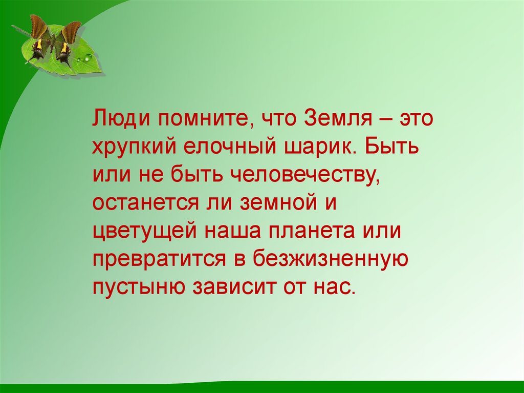 Люди помните, что Земля – этохрупкий елочный шарик. Быть