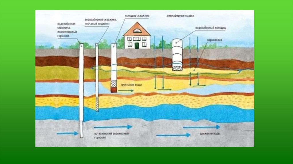 • артезианские: они относятся к межпластовым, но «прячутся» очень глубоко, минимальное расстояние от поверхности часто составляет около 100 м.