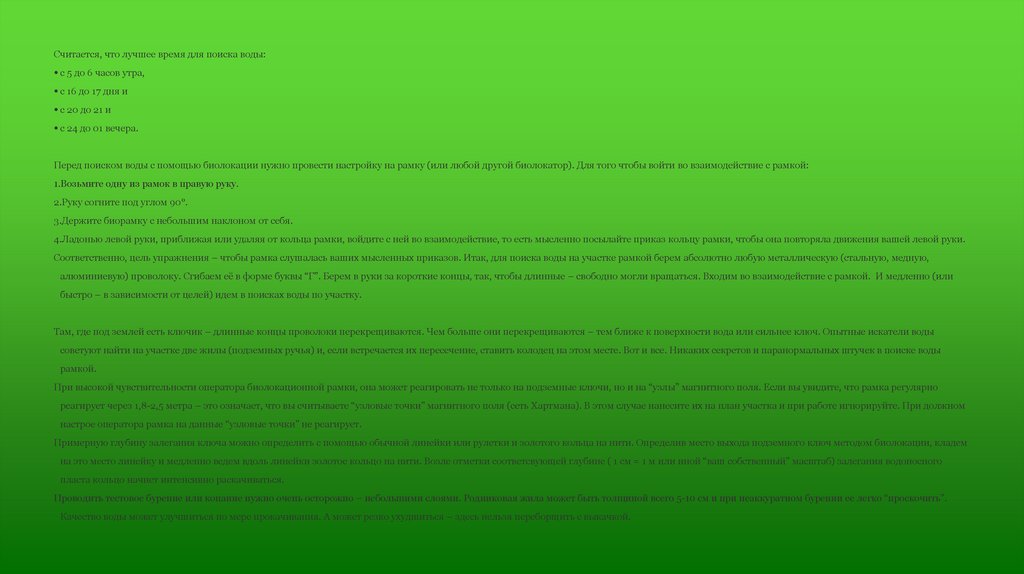 Считается, что лучшее время для поиска воды:• с 5 до 6 часов утра,