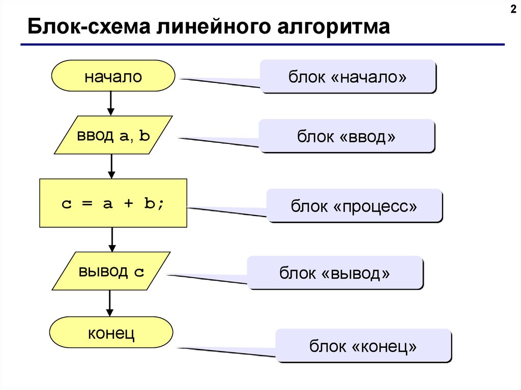 Блок-схема линейного алгоритманачало