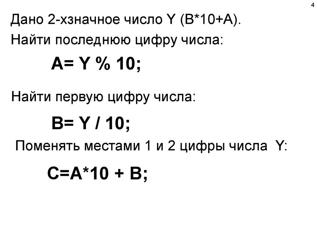 4Дано 2-хзначное число Y (В*10+А).
