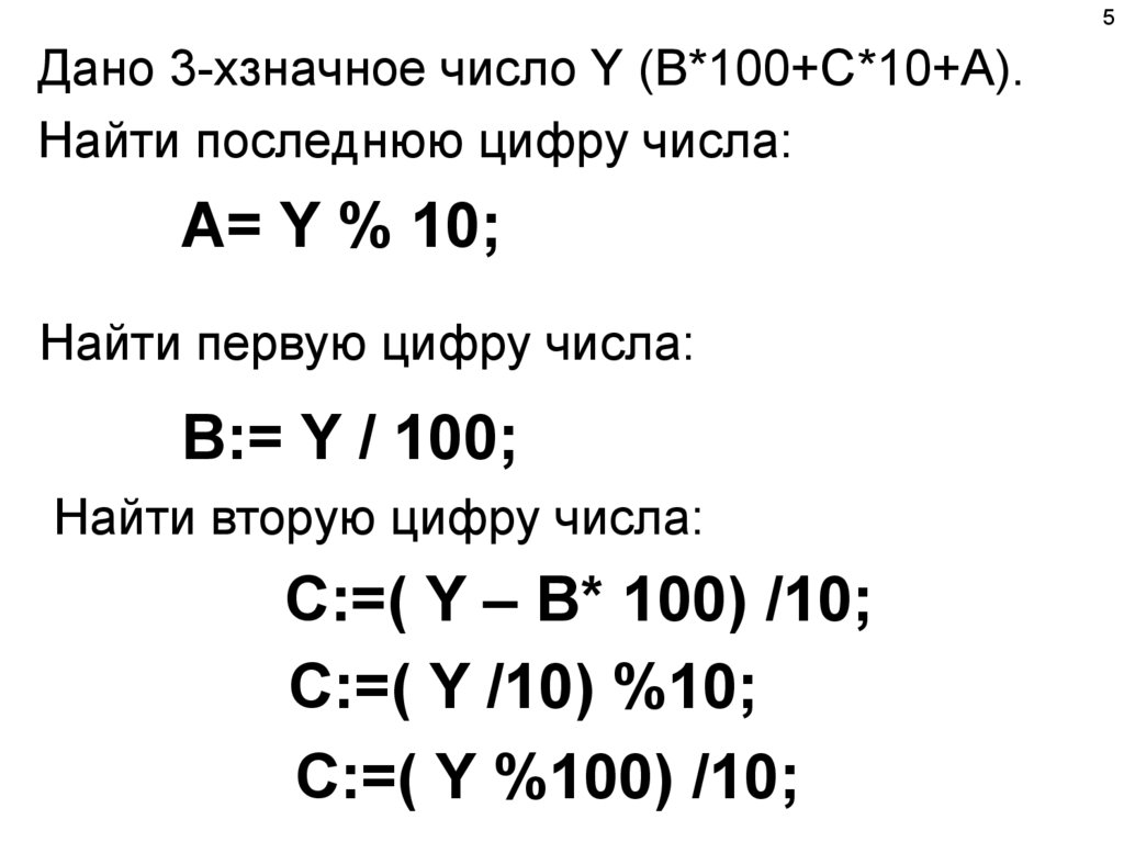 5Дано 3-хзначное число Y (В*100+С*10+А).