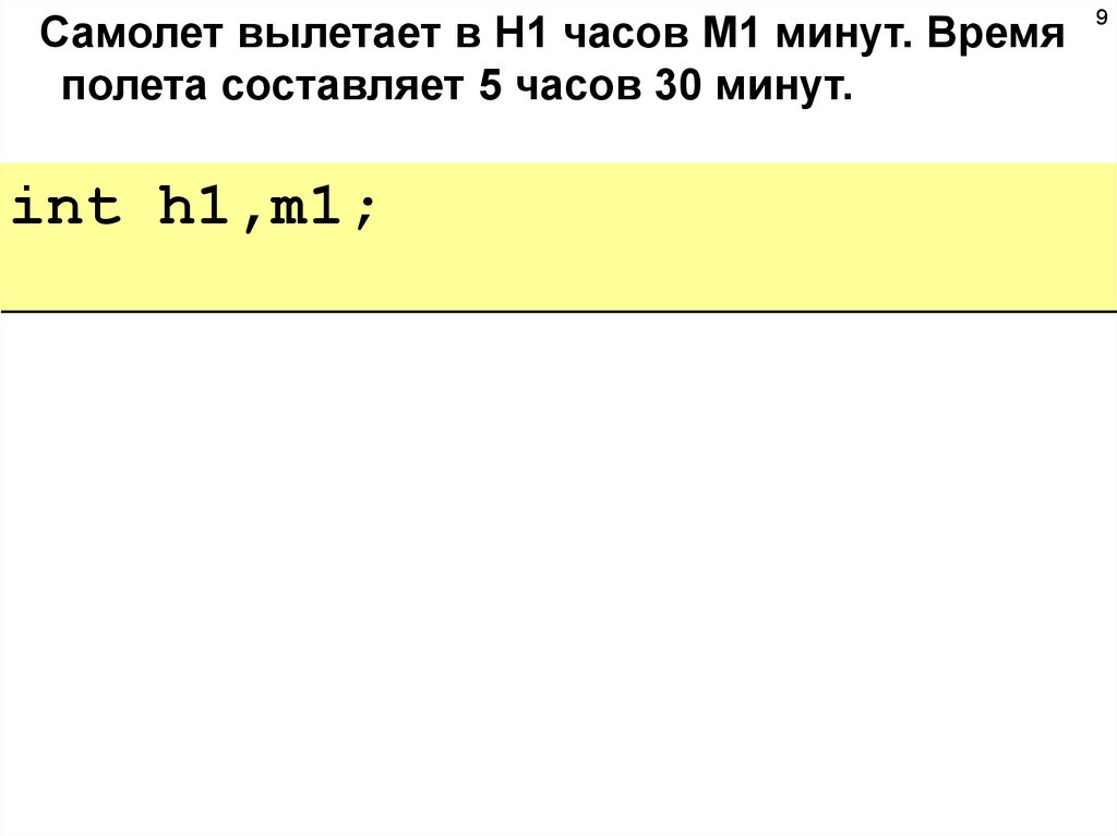 Самолет вылетает в H1 часов M1 минут. Времяполета составляет 5 часов 30 минут.