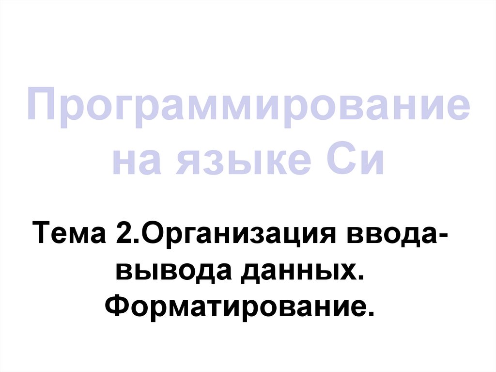 Программирование на языке Си. Организация ввода-вывода данных. Форматирование