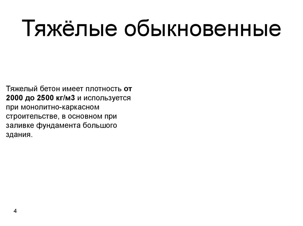 Тяжёлые обыкновенныеТяжелый бетон имеет плотность от
