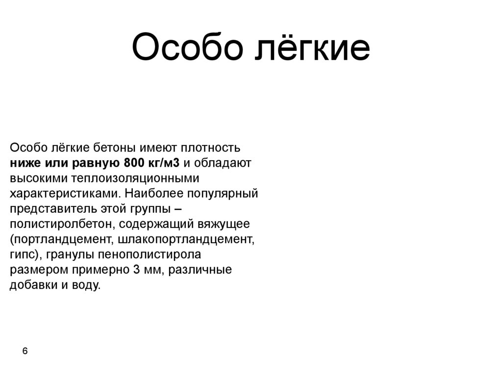 Особо лёгкиеОсобо лёгкие бетоны имеют плотность