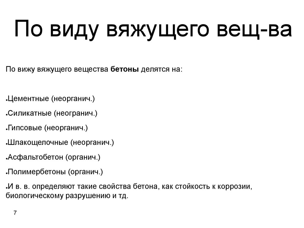 По виду вяжущего вещ-ваПо вижу вяжущего вещества бетоны делятся на: