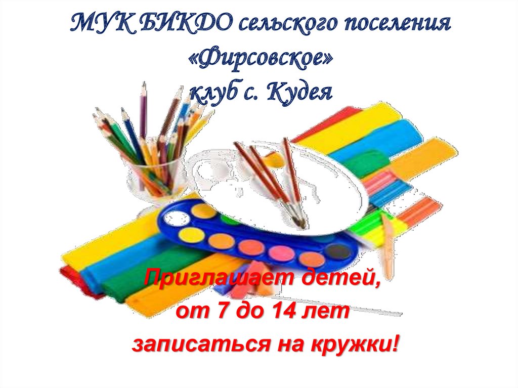 МУК БИКДО сельского поселения Фирсовское клуб с. Кудея приглашает детей от 7 до 14 лет записаться на кружки