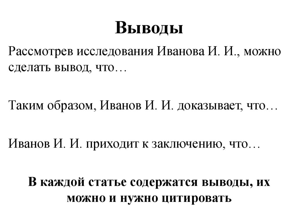 Первое упоминания о книге/статье• В исследовании «Название» Иванов И. И. …
