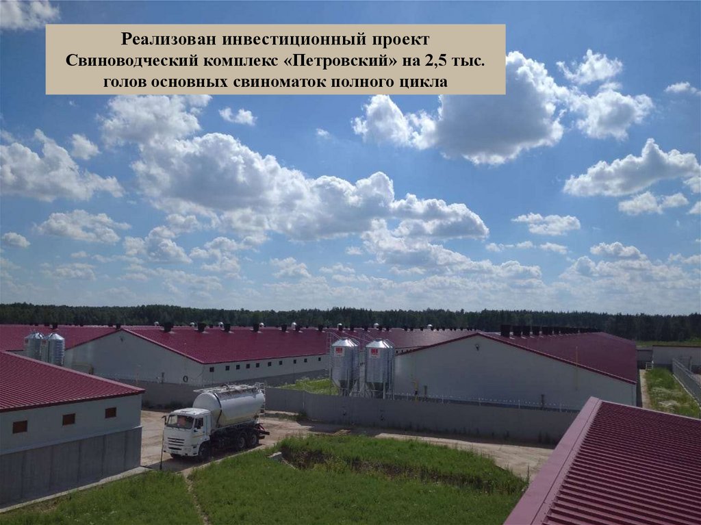 Реализован инвестиционный проектСвиноводческий комплекс «Петровский» на 2,5 тыс.
