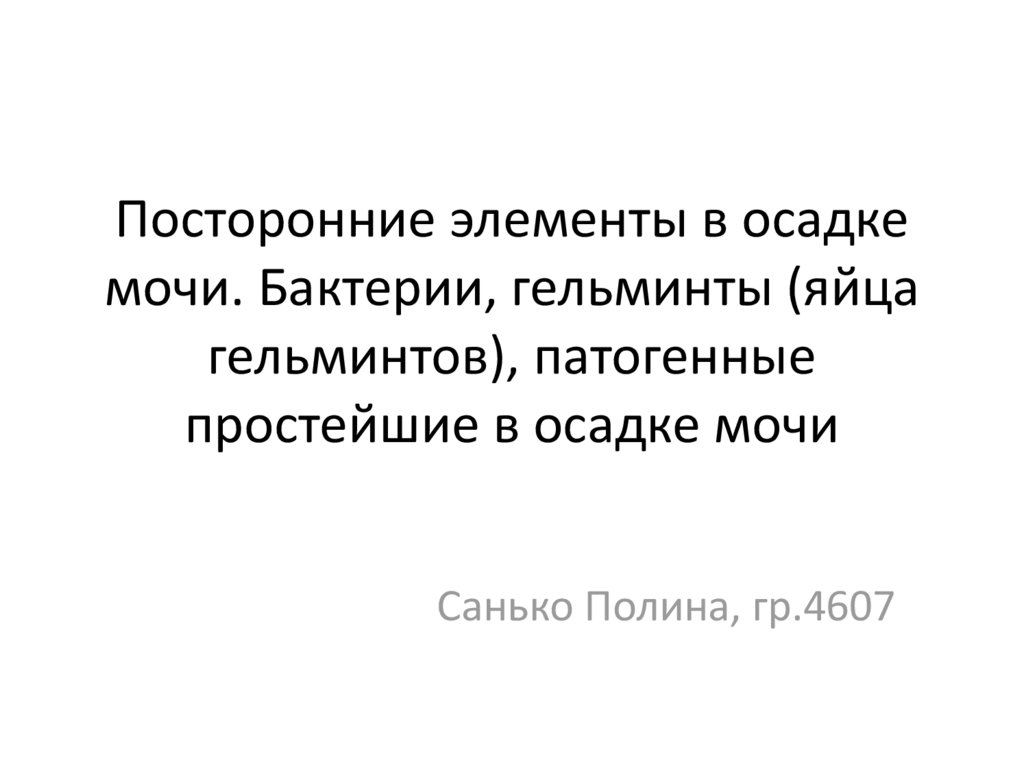 Посторонние элементы в осадкемочи. Бактерии, гельминты (яйца