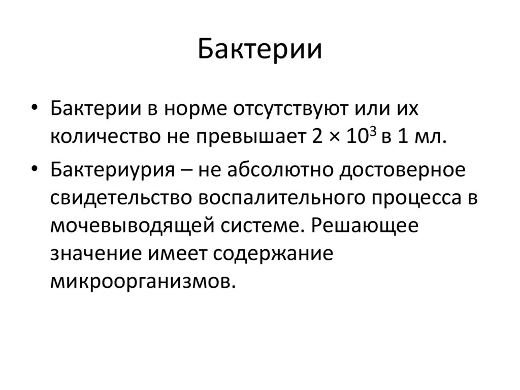 • Бактериурия – не абсолютно достоверное