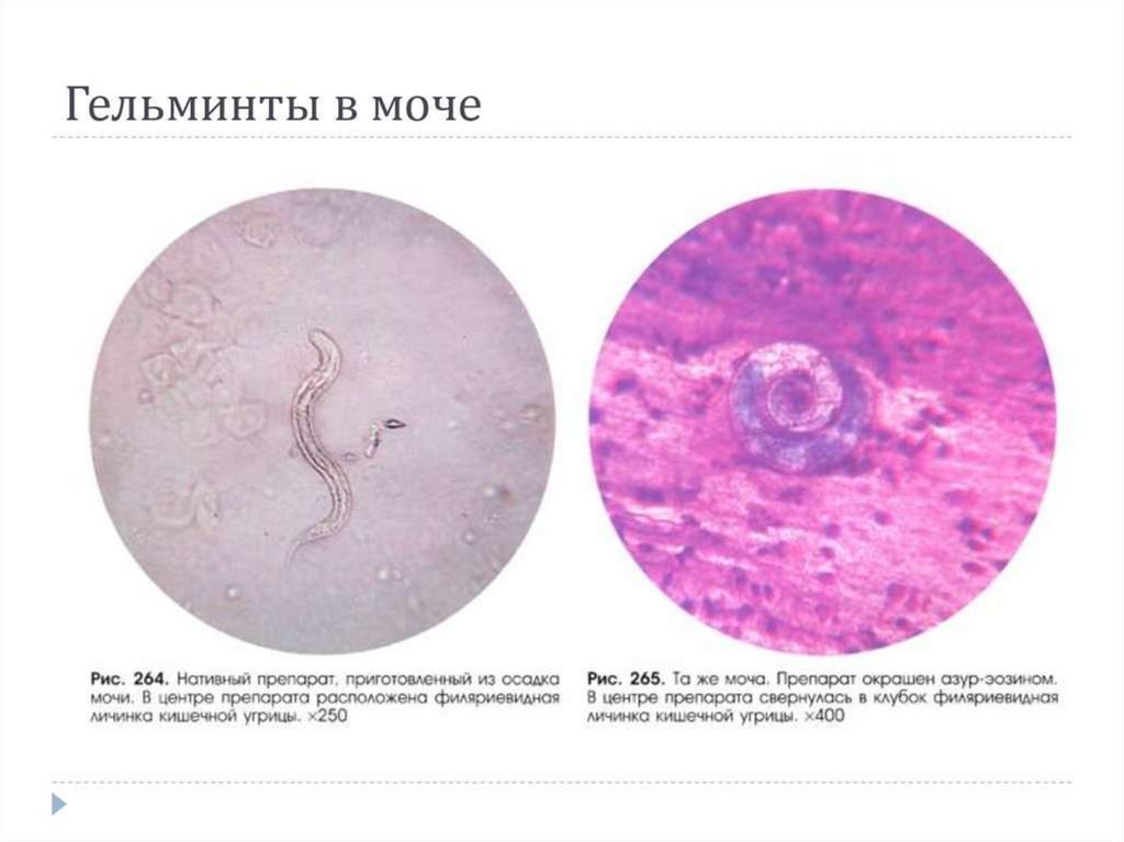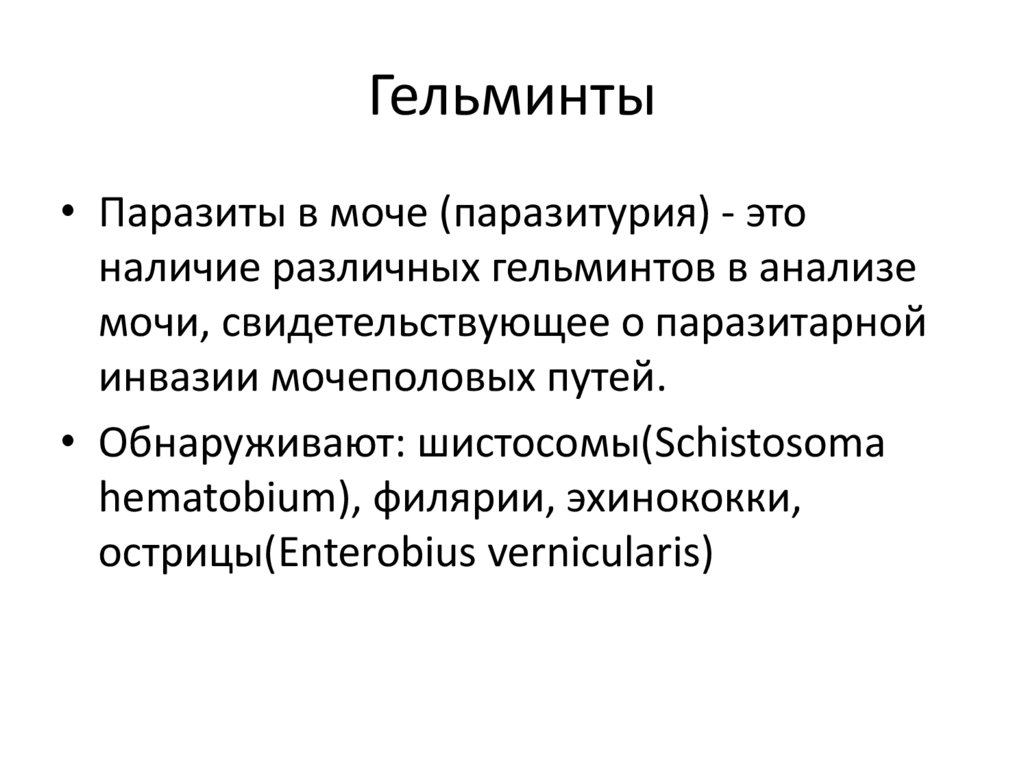 Гельминты• Паразиты в моче (паразитурия) - это