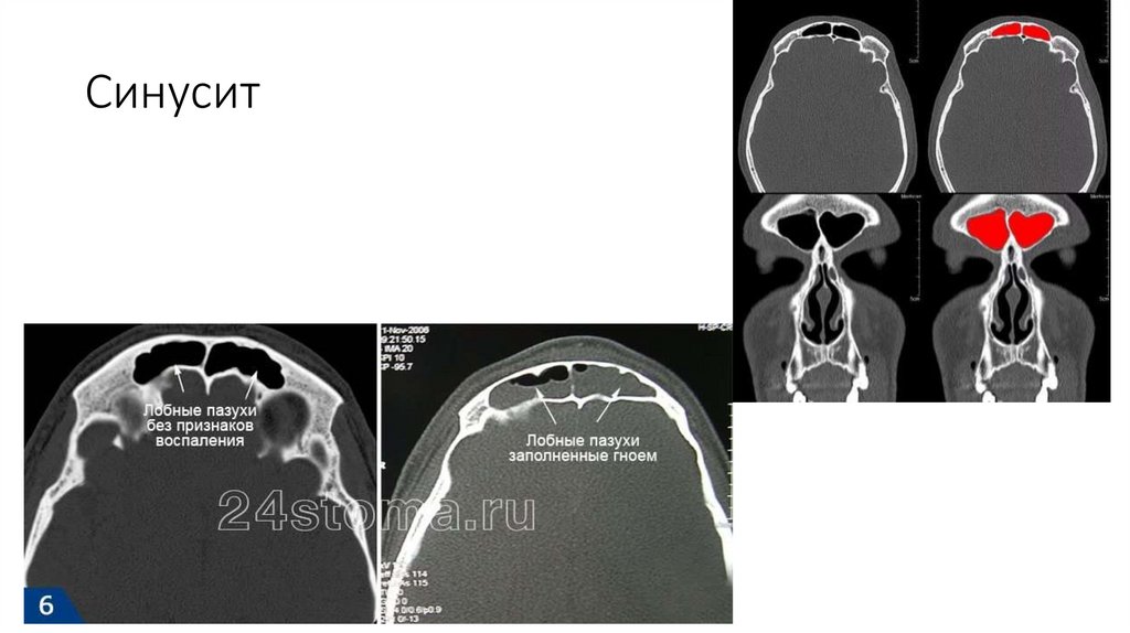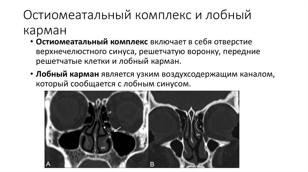 Клиническая анатомия лобнойпазухи, лобного кармана. КТ.