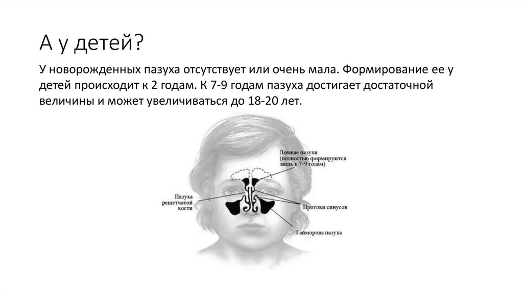 А у детей?У новорожденных пазуха отсутствует или очень мала. Формирование ее у