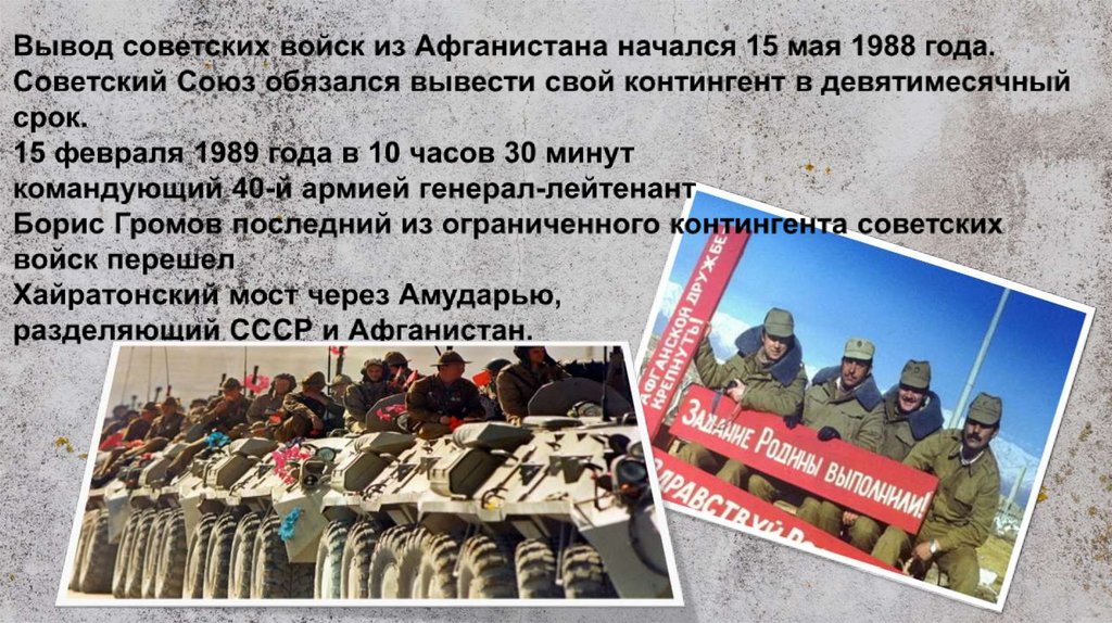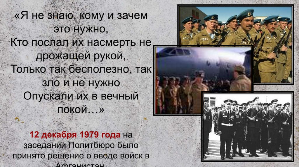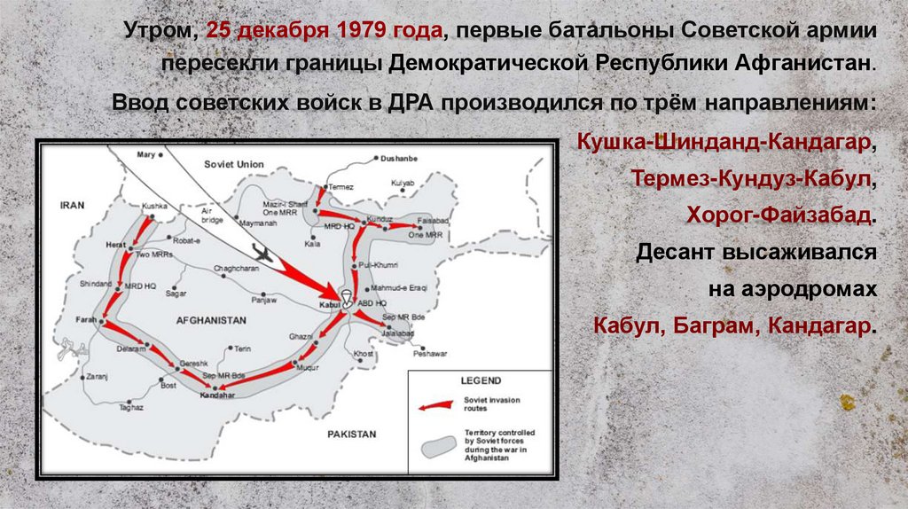 Утром, 25 декабря 1979 года, первые батальоны Советской армиипересекли границы Демократической Республики Афганистан.