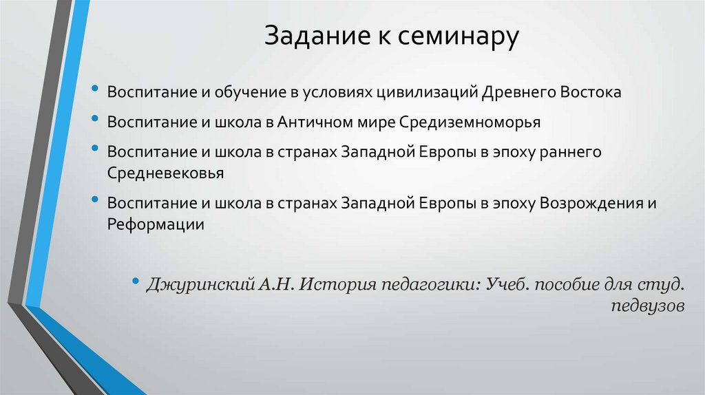 Задание к семинару• Воспитание и обучение в условиях цивилизаций Древнего Востока