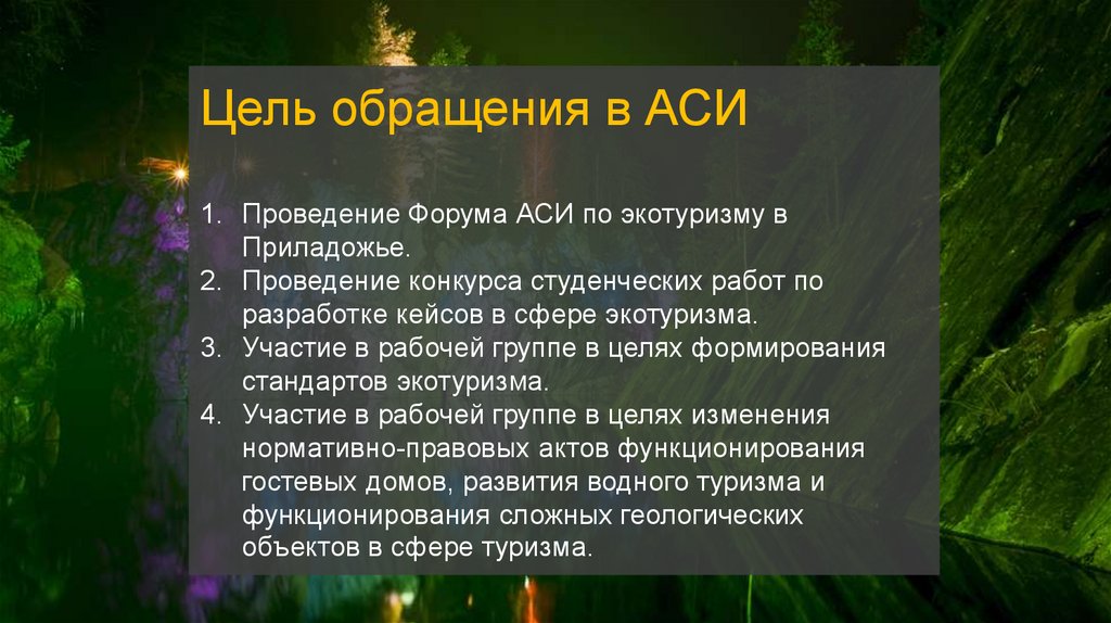 Цель обращения в АСИ1. Проведение Форума АСИ по экотуризму в