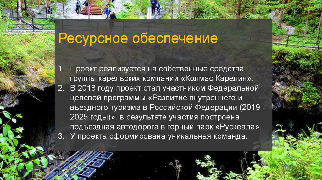 Ресурсное обеспечение1. Проект реализуется на собственные средства
