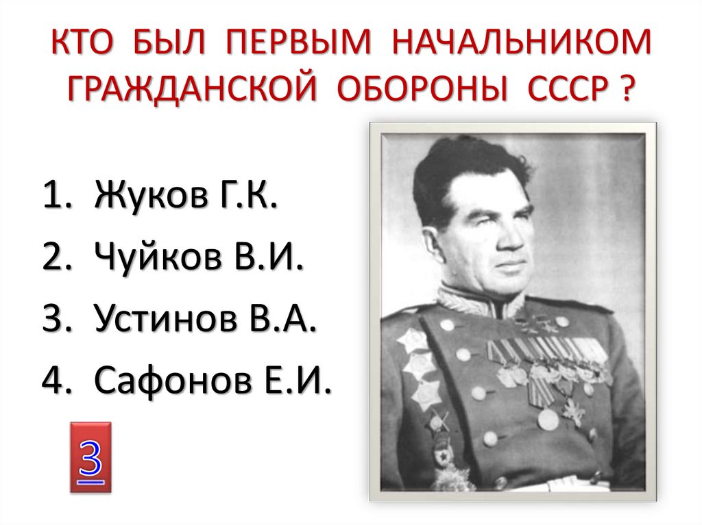 КТО БЫЛ ПЕРВЫМ НАЧАЛЬНИКОМГРАЖДАНСКОЙ ОБОРОНЫ СССР ?
