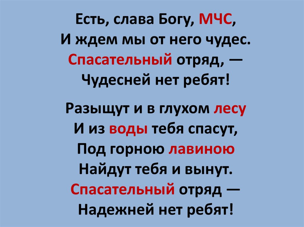 Есть, слава Богу, МЧС,И ждем мы от него чудес.