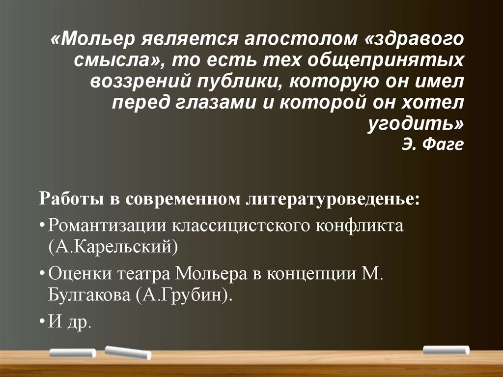 «Мольер является апостолом «здравогосмысла», то есть тех общепринятых