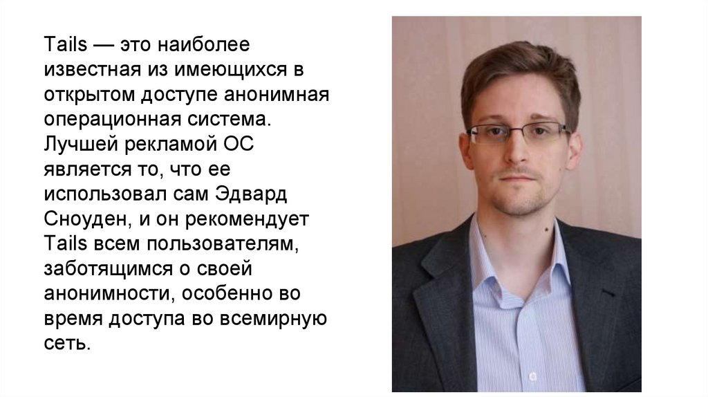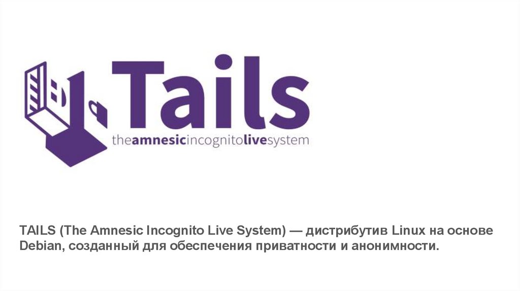 TAILS (The Amnesic Incognito Live System) — дистрибутив Linux на основеDebian, созданный для обеспечения приватности и анонимности.