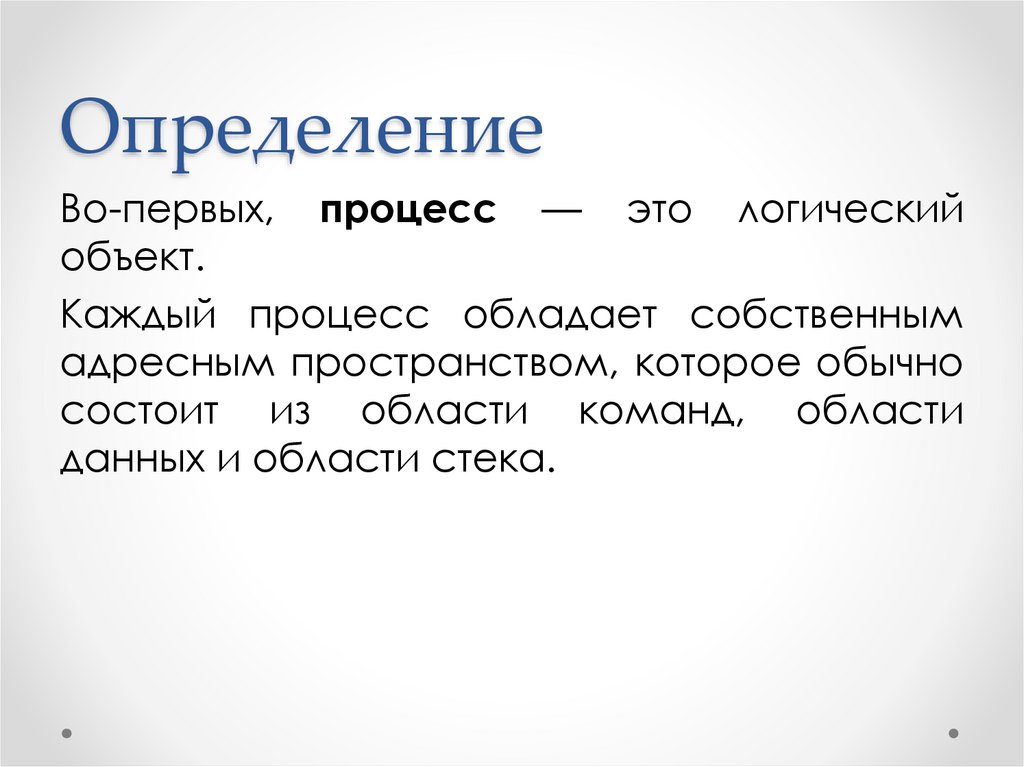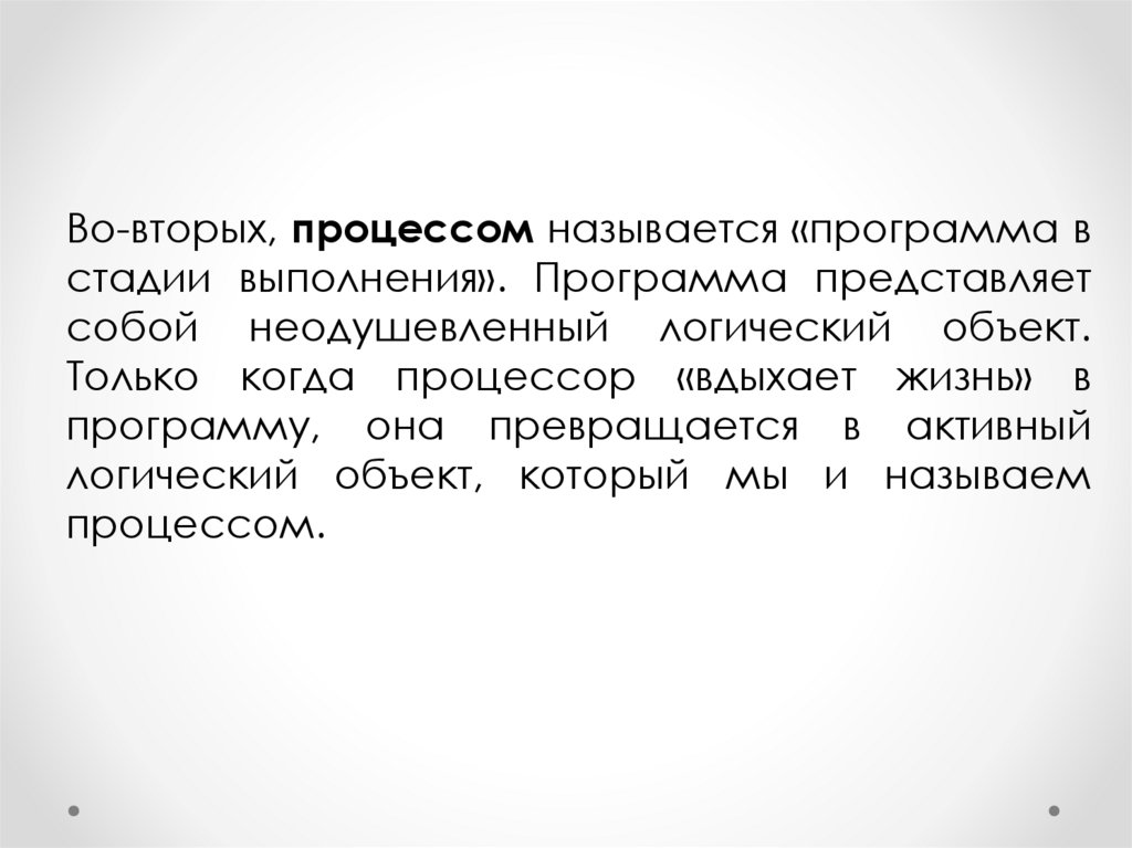 Во-вторых, процессом называется «программа встадии выполнения». Программа представляет