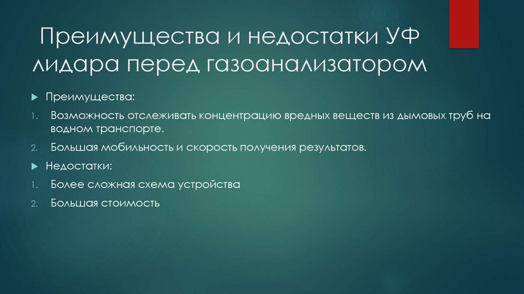 Преимущества и недостатки УФлидара перед газоанализатором