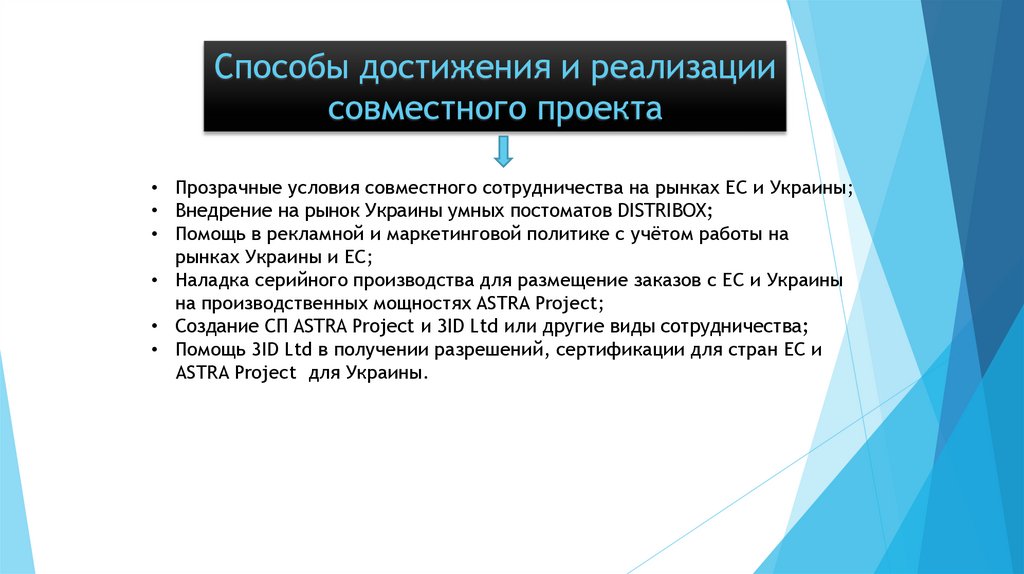 • Создание СП ASTRA Project и 3ID Ltd или другие виды сотрудничества;
