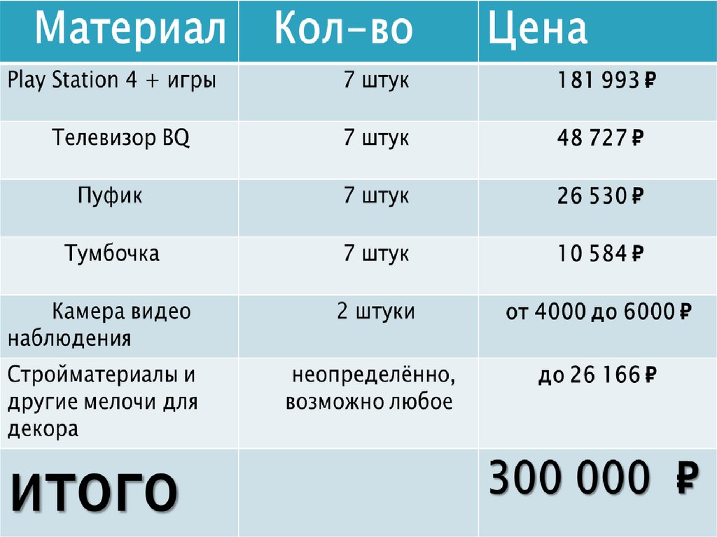 Определиться с оборудованием, посчитать