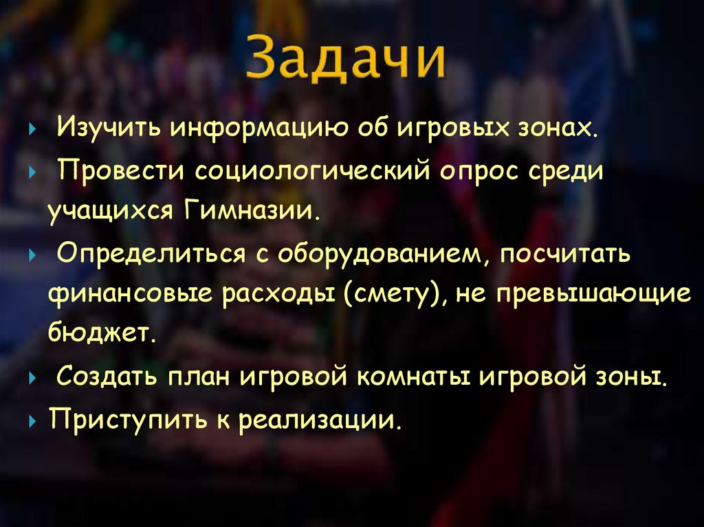 Изучить информацию об игровых зонах.Провести социологический опрос среди