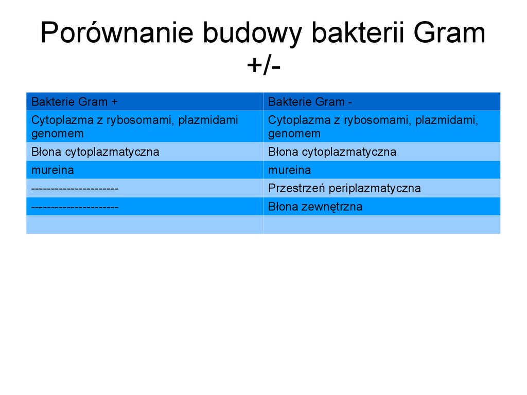 Porównanie budowy bakterii Gram+/Bakterie Gram +