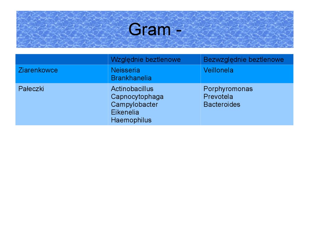 Gram Względnie beztlenoweBezwzględnie beztlenowe