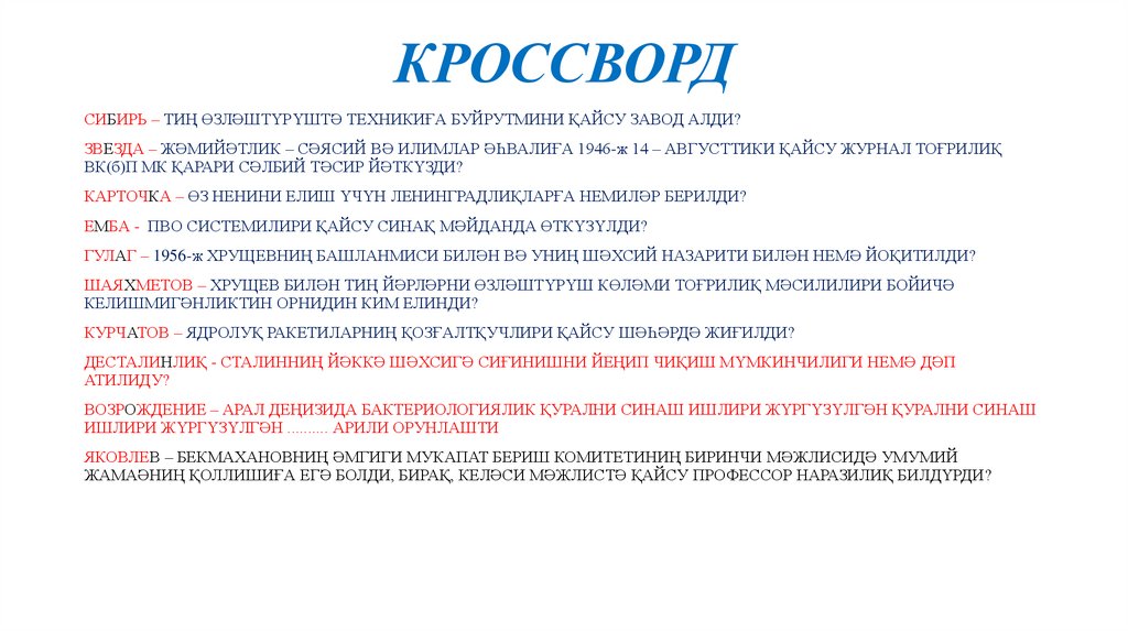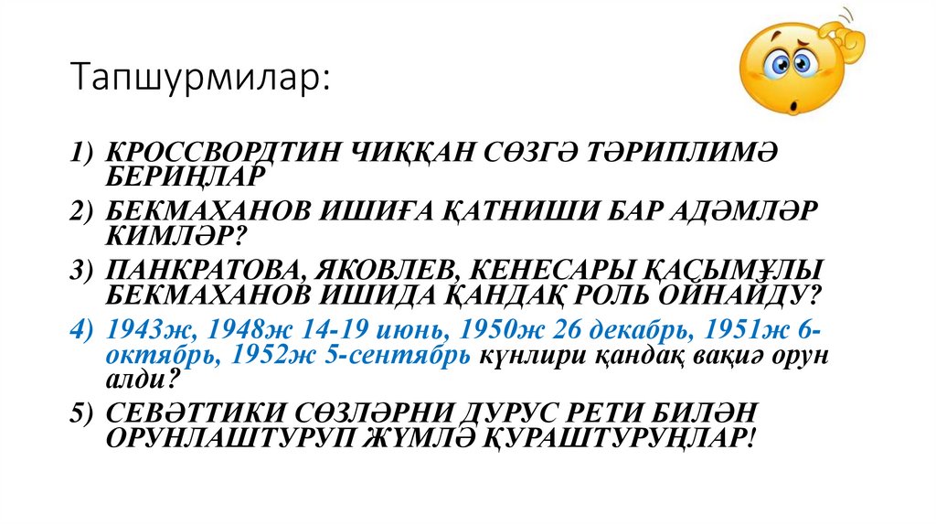 Тапшурмилар:1) КРОССВОРДТИН ЧИҚҚАН СӨЗГӘ ТӘРИПЛИМӘ