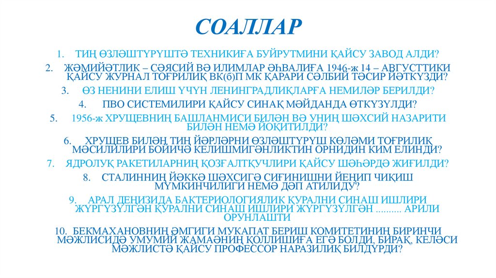 2. ЖӘМИЙӘТЛИК – СӘЯСИЙ ВӘ ИЛИМЛАР ӘҺВАЛИҒА 1946-ж 14 – АВГУСТТИКИ