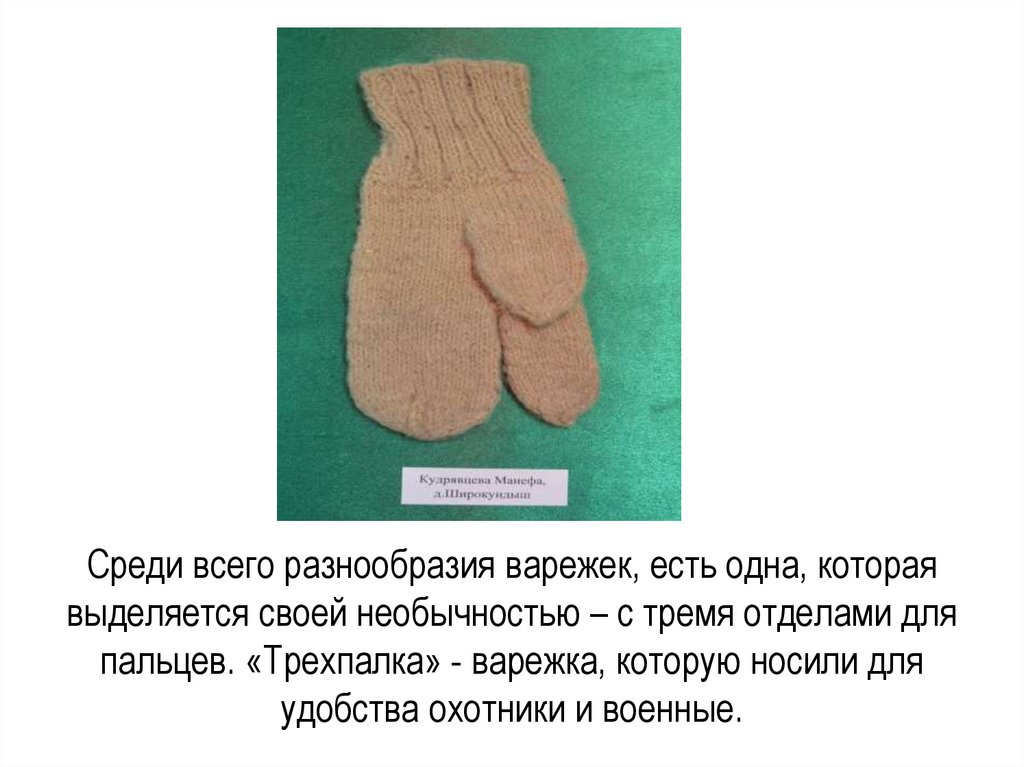 пальцев. «Трехпалка» - варежка, которую носили для
