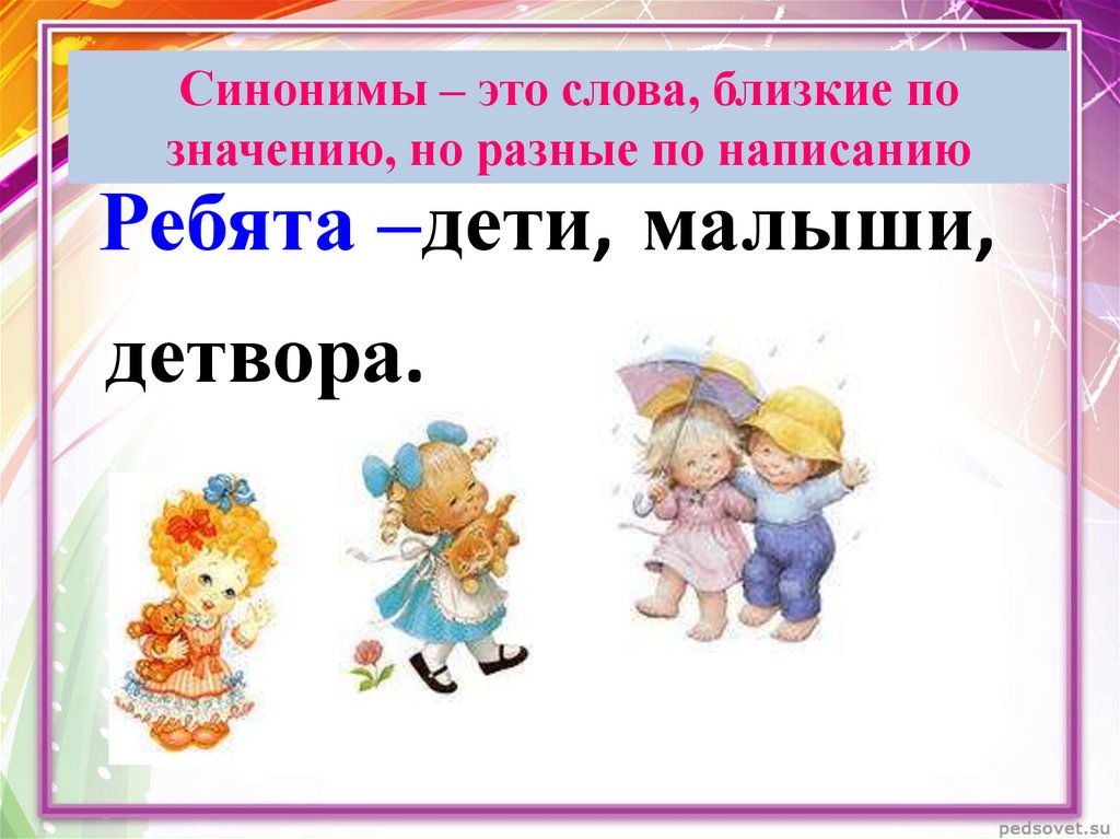 Синонимы – это слова, близкие позначению, но разные по написанию
