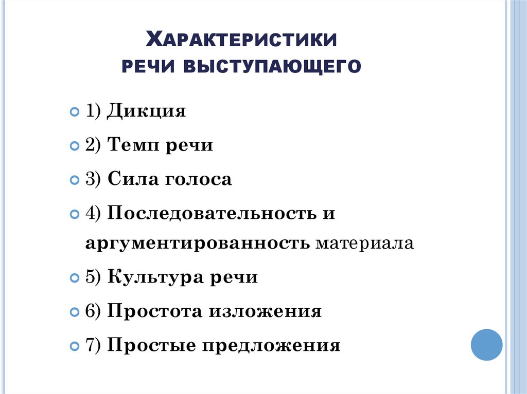 ХАРАКТЕРИСТИКИРЕЧИ ВЫСТУПАЮЩЕГО
