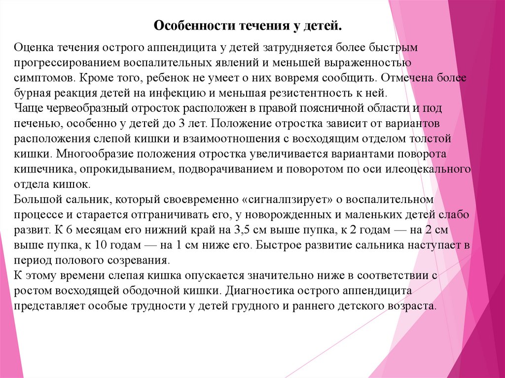 Особенности течения у детей.Оценка течения острого аппендицита у детей затрудняется более быстрым