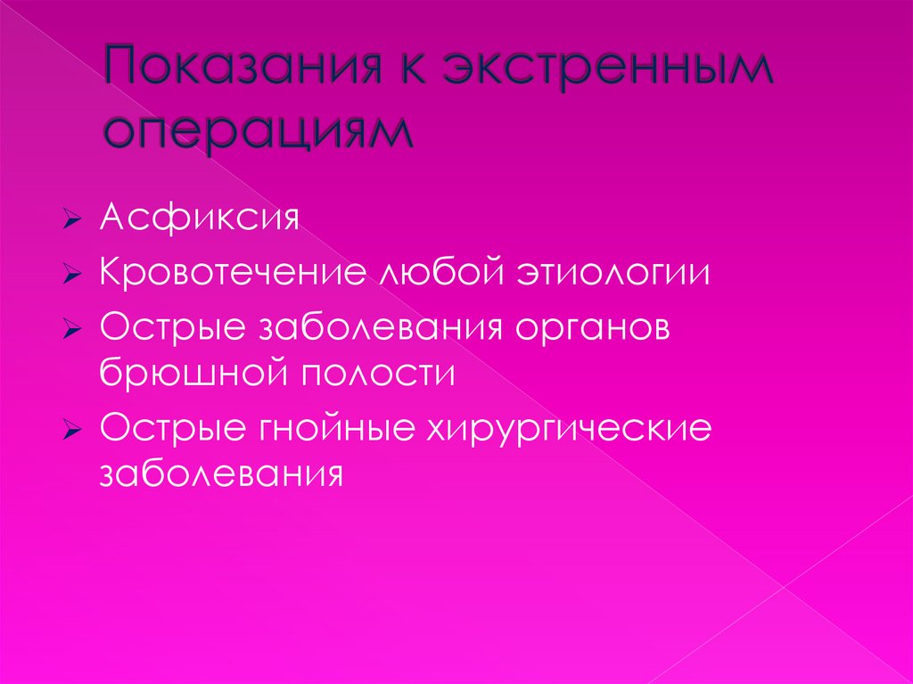 По срокам выполнения различают:Экстренные – выполняются в первые 24 часа после госпитализации