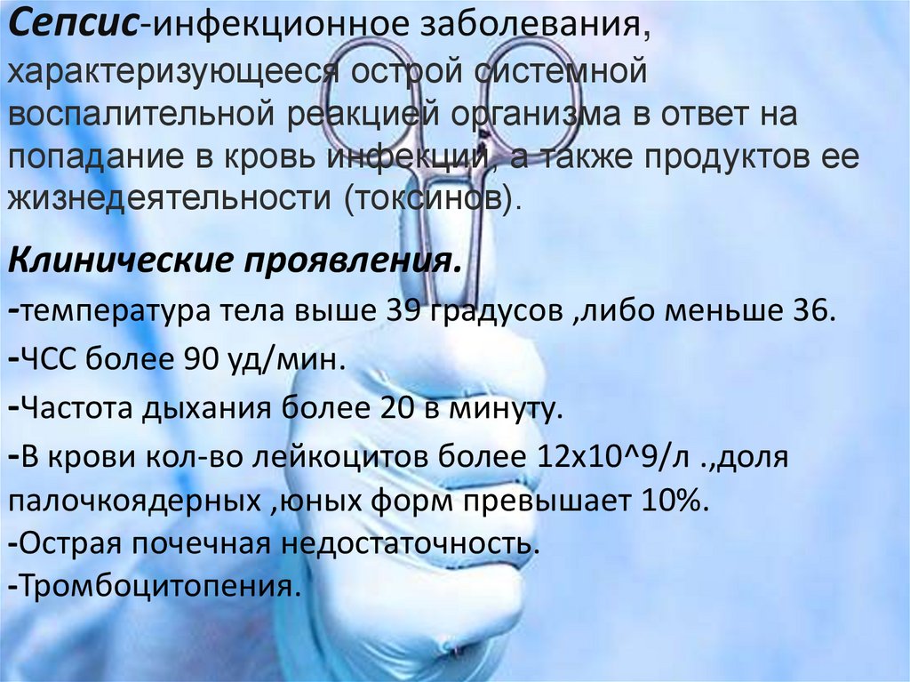 Сепсис-инфекционное заболевания,характеризующееся острой системной
