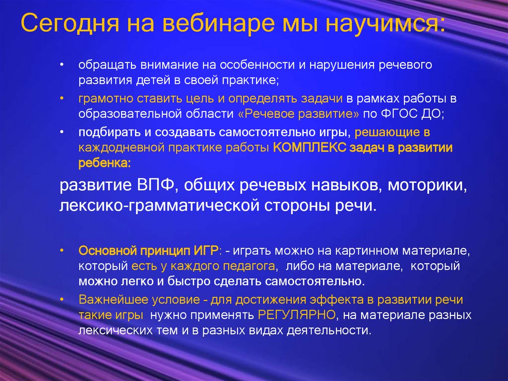 Сегодня на вебинаре мы научимся:обращать внимание на особенности и нарушения речевого
